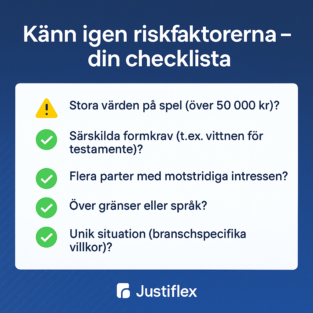 Om tre eller fler punkter stĂ€mmer â pausa och prata med en jurist: