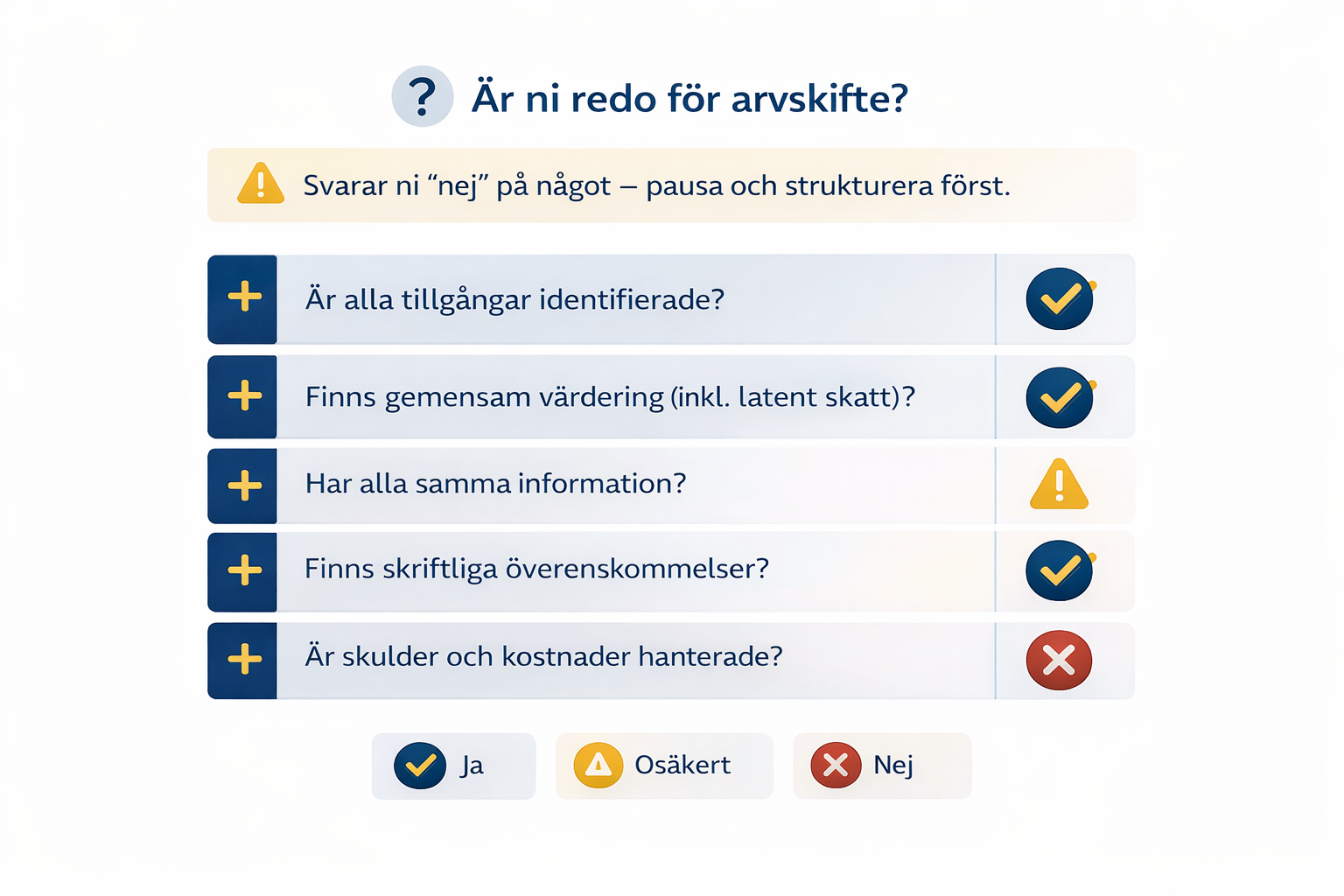 Med ett tydligt arvskiftesavtal + värderingsmodell löstes det – relationen bestod.
