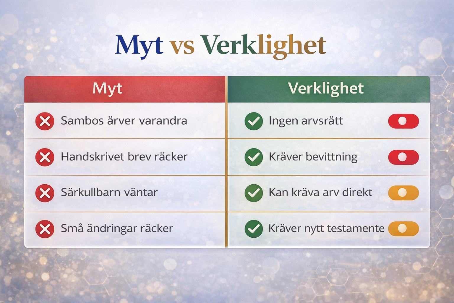 Den här guiden är Sveriges mest kompletta genomgång 2025. Efter att du läst klart vet du exakt när arvsrätten förverkas, vem som får pengarna istället – och hur du skyddar din vilja juridiskt.