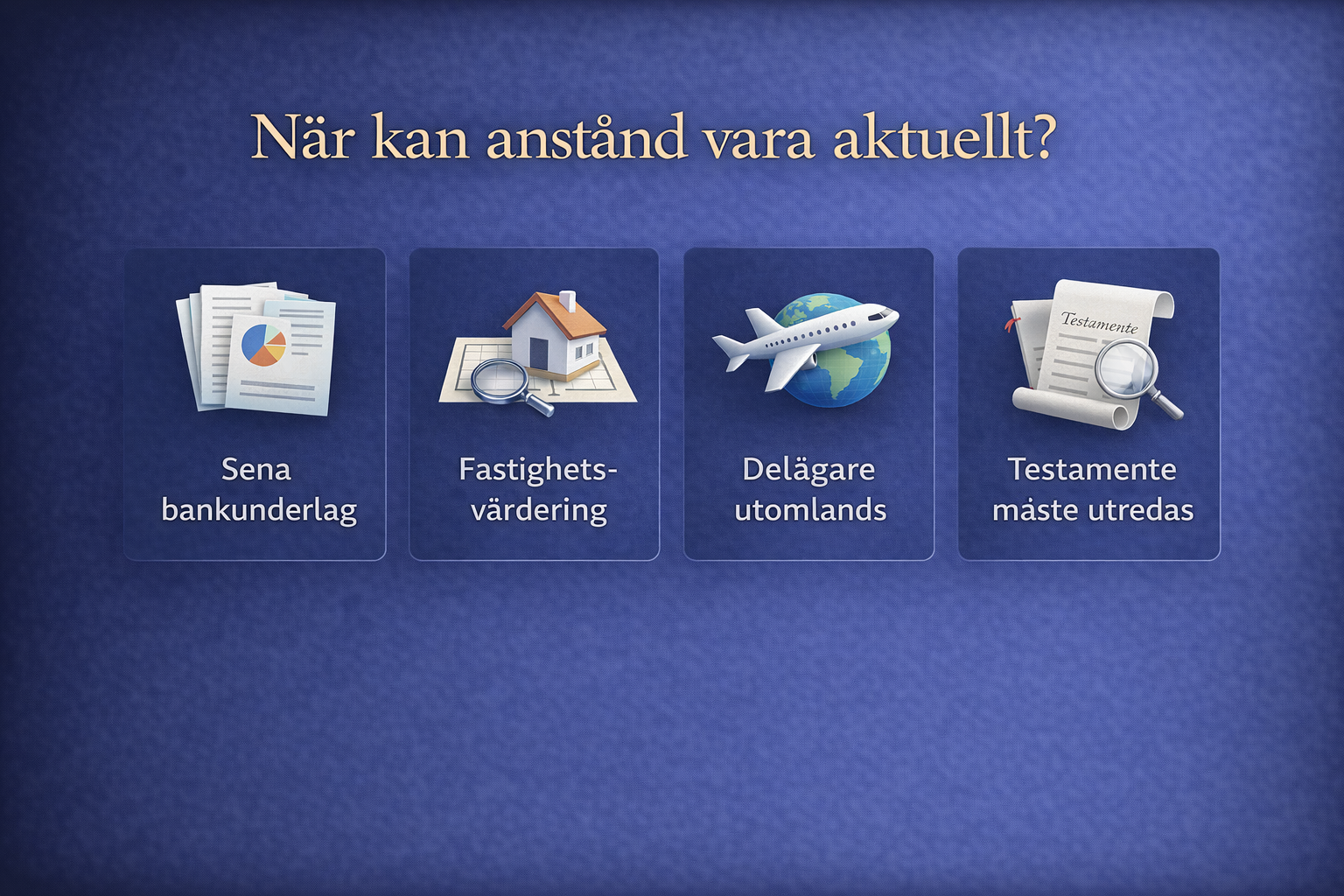 Ett dödsbo med konto i utländsk bank såg enkelt ut vid första anblick. Det som försenade allt var inte någon tvist, utan att bankuppgifterna drog ut på tiden. Hade underlagen beställts direkt hade anstånd sannolikt kunnat undvikas.
