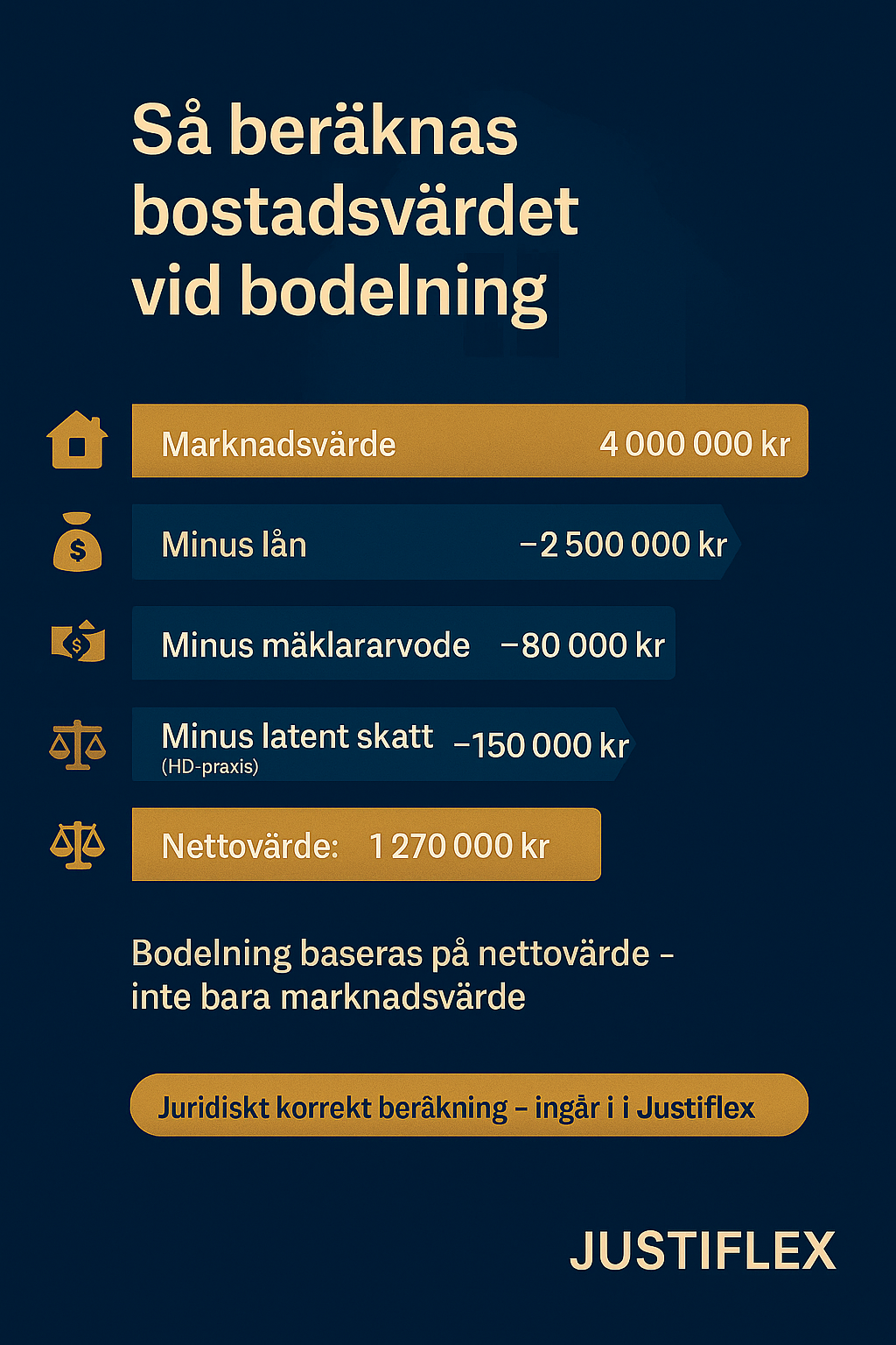 *HD har slagit fast att latent kapitalvinstskatt ska beaktas vid bodelning, se NJA 1975 s. 288.