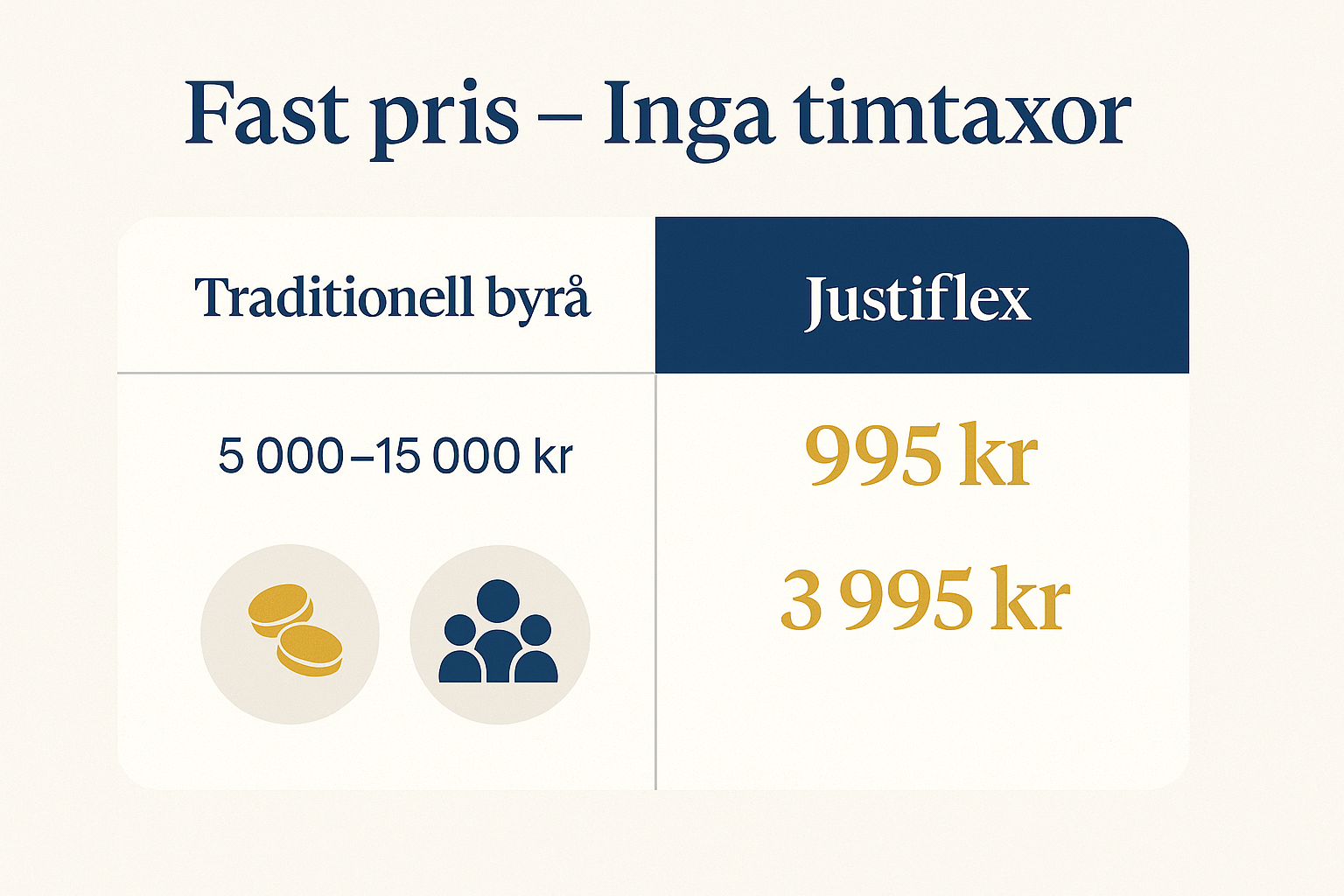 Justiflex erbjuder även arvskiftesavtal, testamenten, framtidsfullmakter och gåvobrev – allt digitalt och juridiskt granskat.