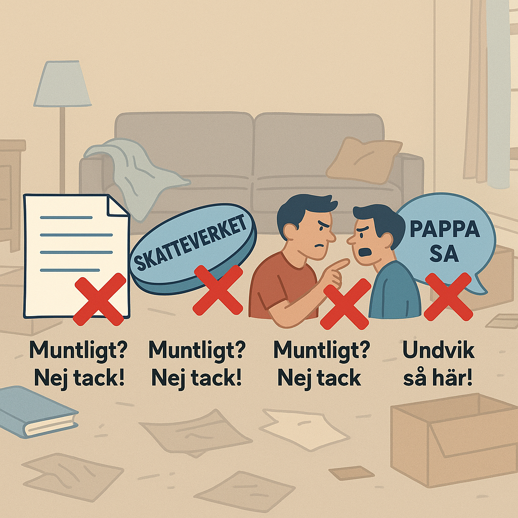 - ❌ Utan gåvobrev: Stoppad överlåtelse, skattesmäll och syskonbråk.