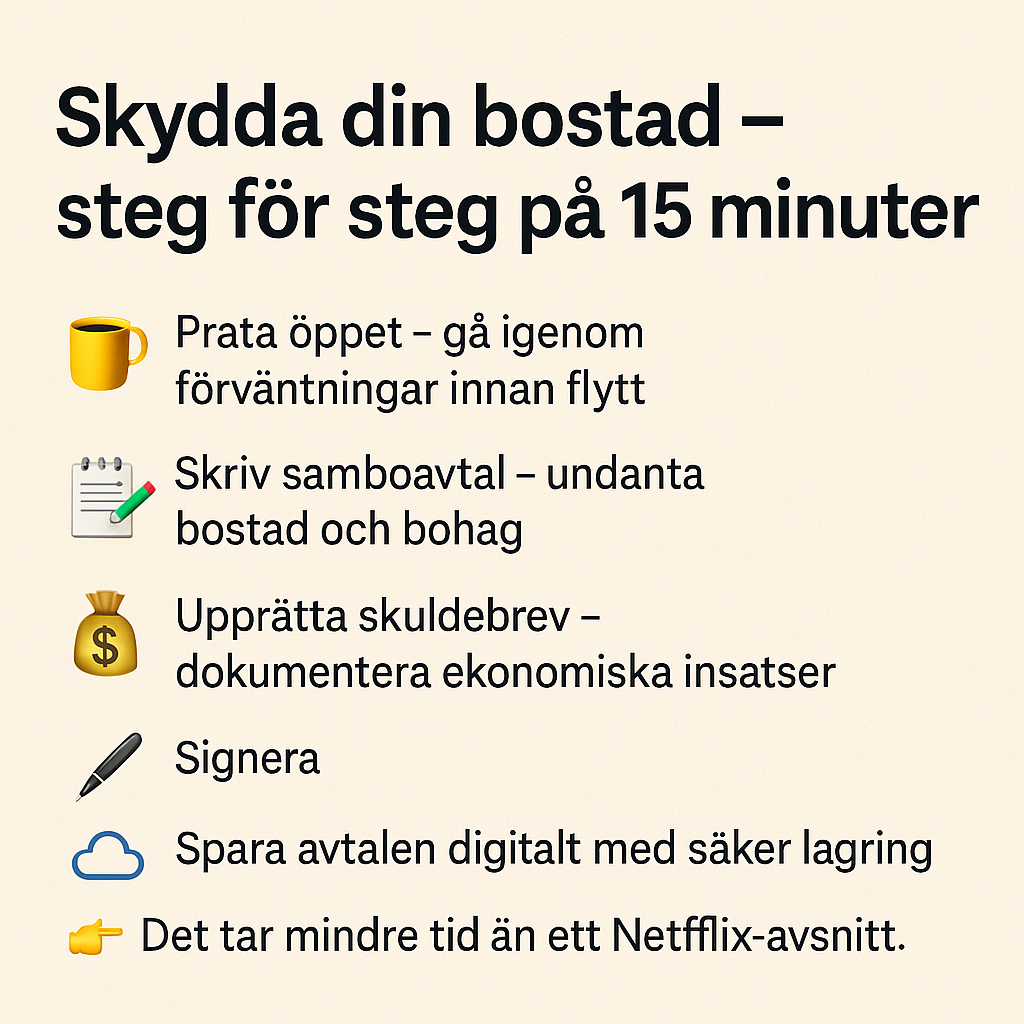 6️⃣ Planera framåt: skriv samboavtal för att undvika framtida tvister.