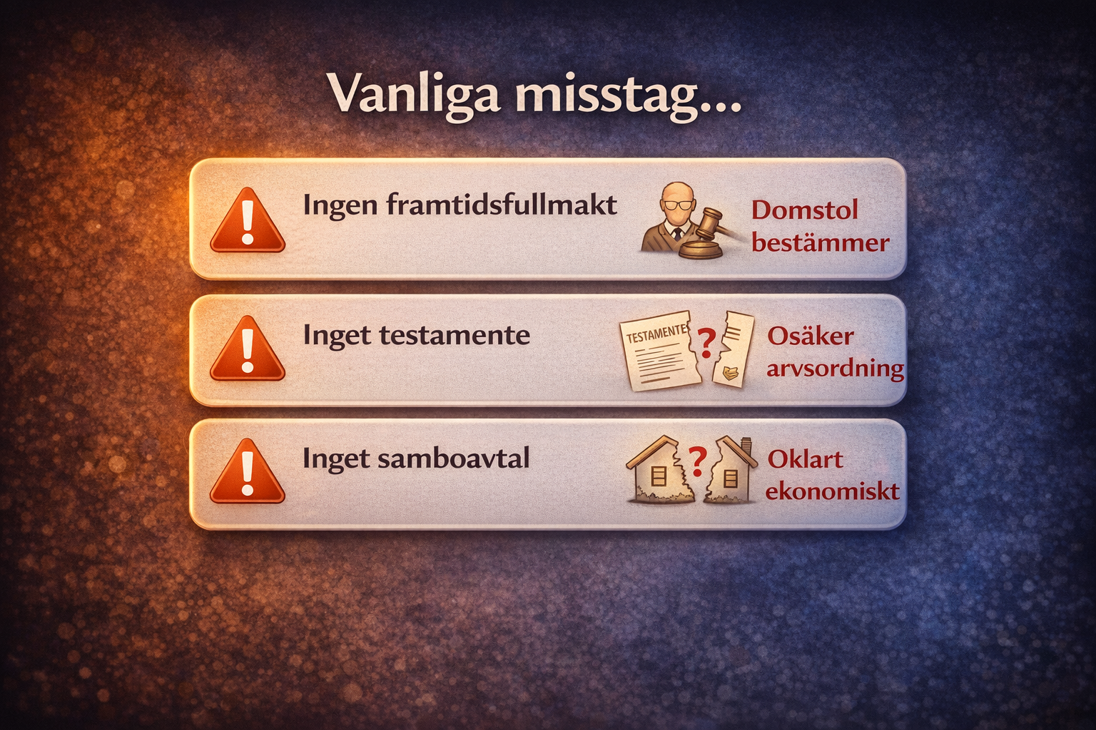 Den största risken vi ser i rådgivning är att ekonomin lämnas oreglerad — vilket ofta leder till retroaktiv konflikt.