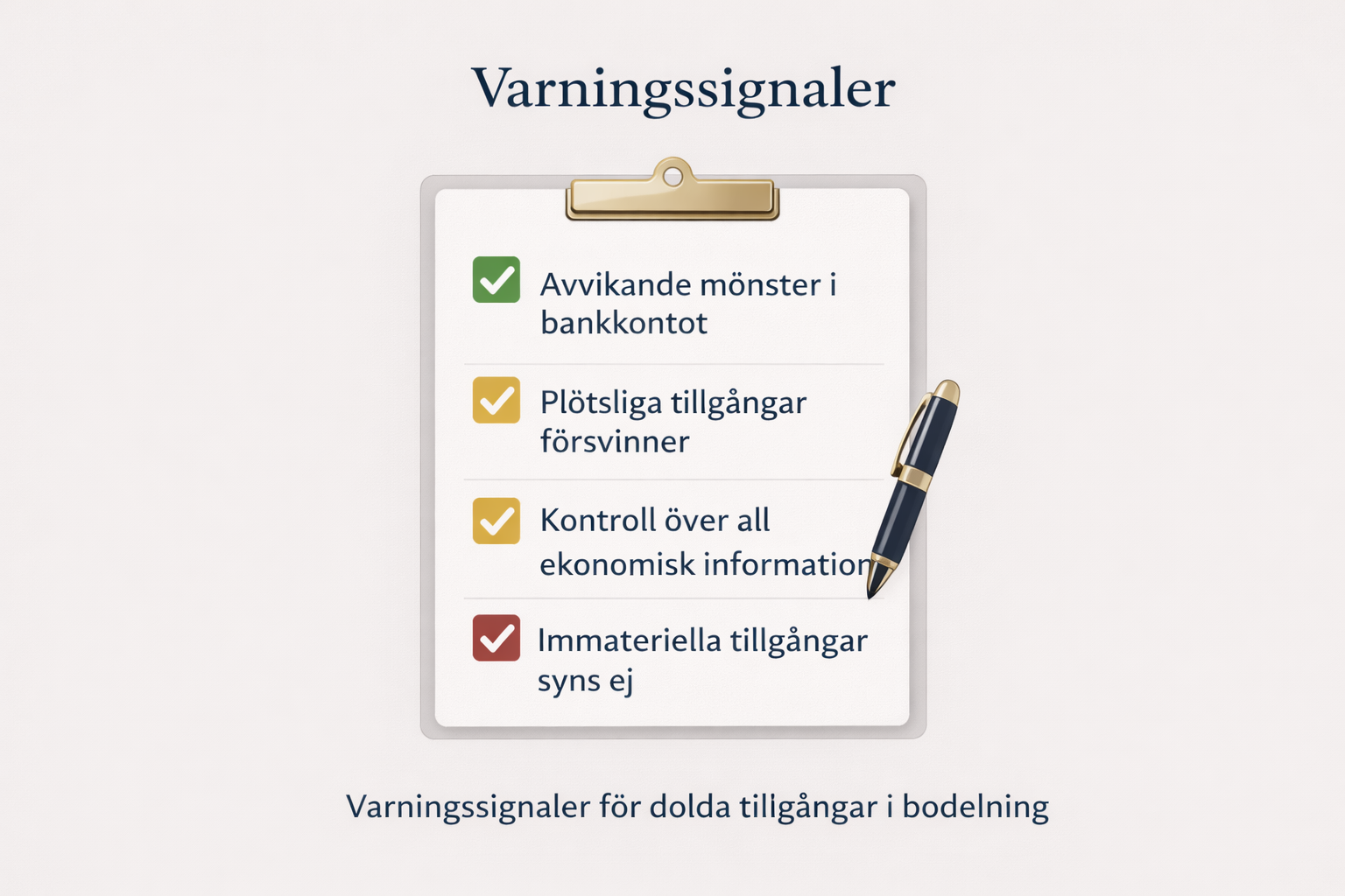 ✔ Identifiering av risk för dolda tillgångar