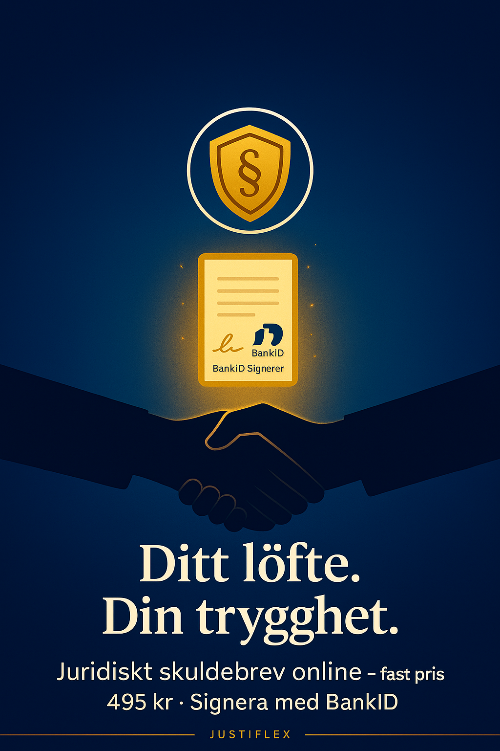Med Justiflex skriver du ett juridiskt korrekt skuldebrev online – snabbt, enkelt och 100 % lagligt.