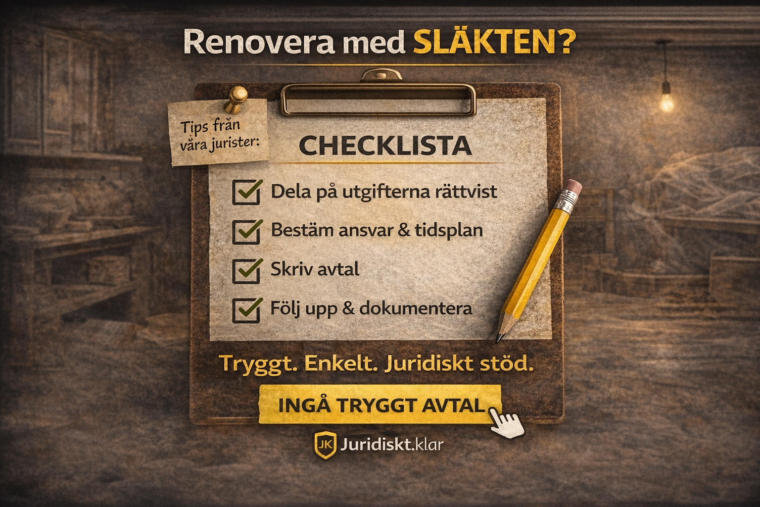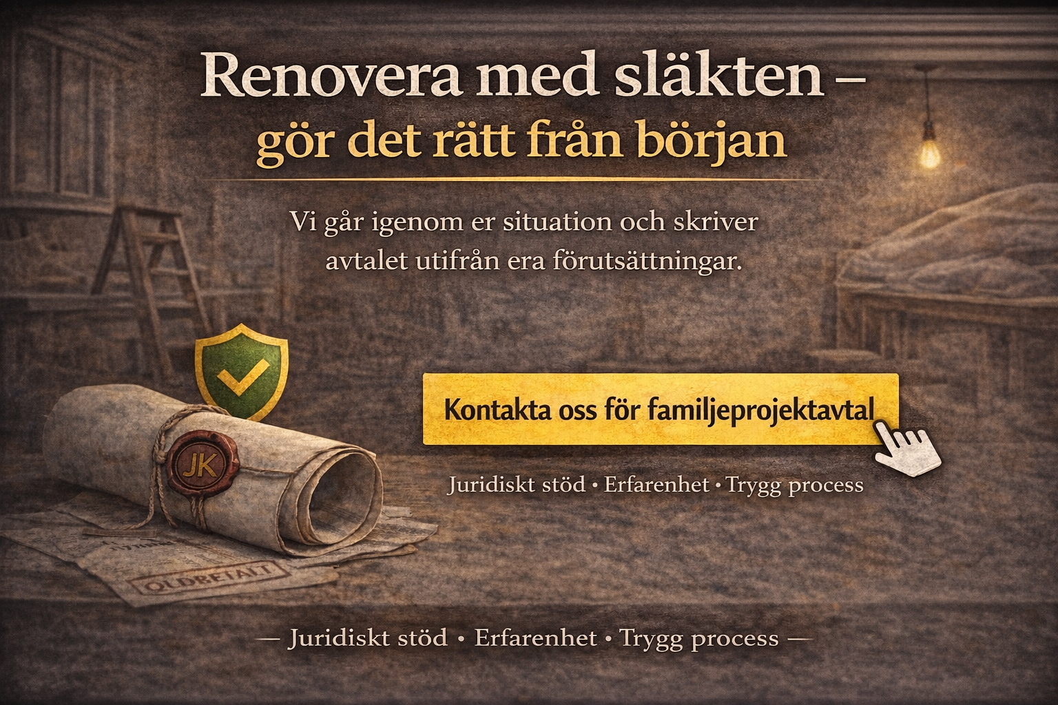Vid renoveringsprojekt inom familjen är det sällan relationerna i sig som skapar problem, utan avsaknaden av tydliga värderingar, dokumentation och juridisk struktur från början.