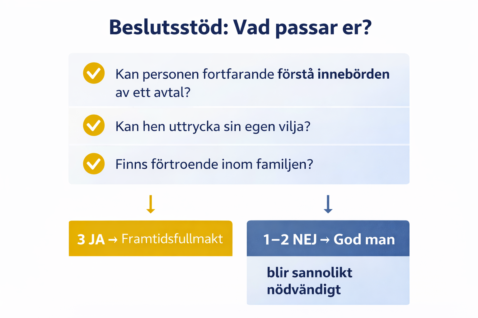 1–2 nej → God man blir sannolikt nödvändigt