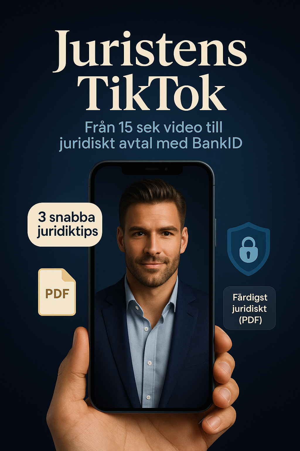 Advokater och digitala juristbyråer dyker upp i folks For You-flöde, förklarar juridiska fällor på 15–60 sekunder – och folk tittar klart, sparar klippen, skickar till sin partner och klickar vidare för att skriva riktiga avtal online.