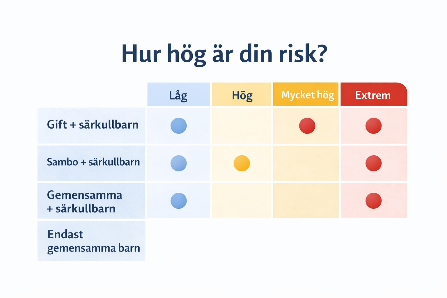 | Gemensamma + särkullbarn | Hög | Testamente som balanserar |