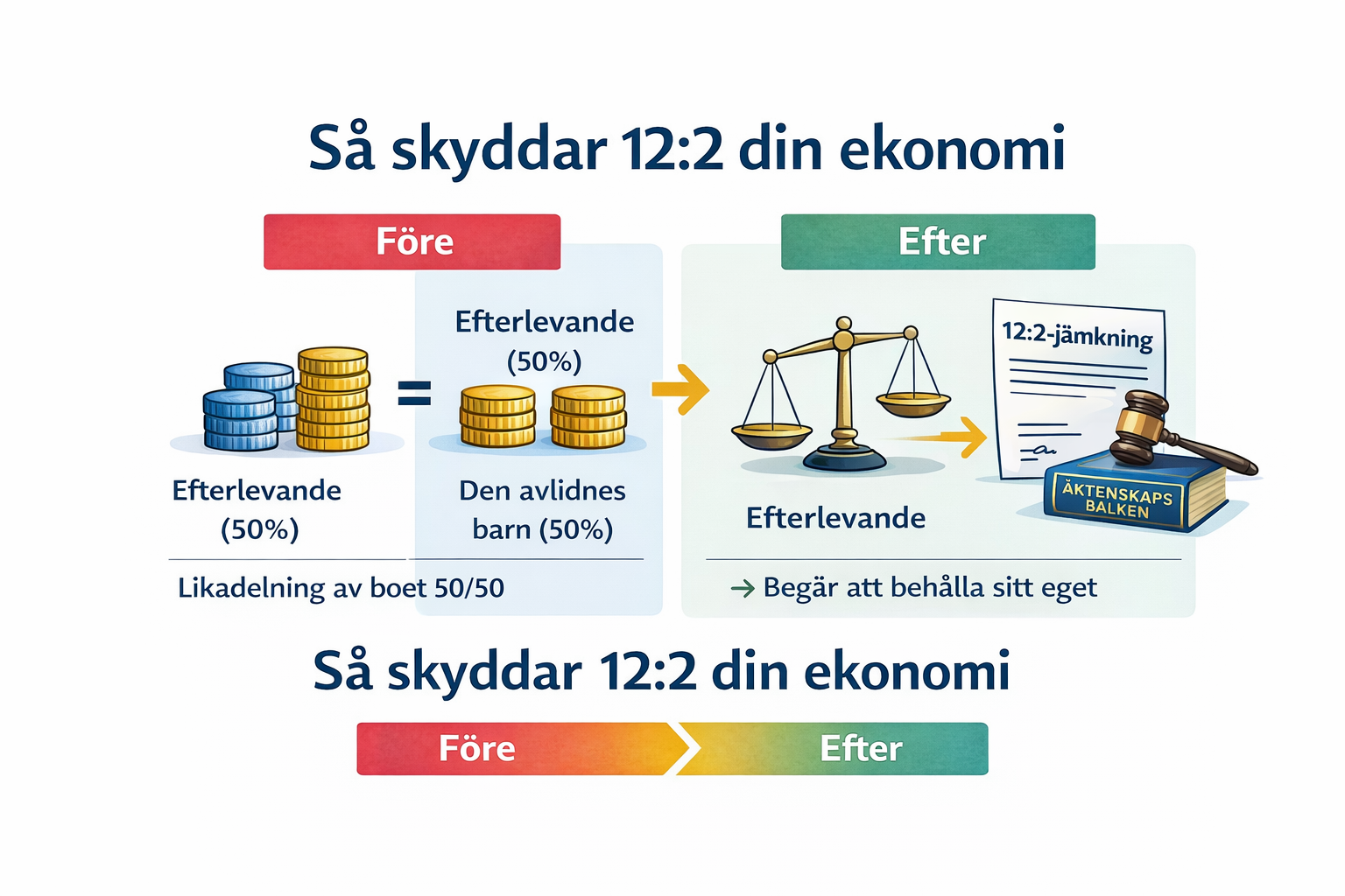Det är det vanligaste missförståndet vi möter. Lagen prioriterar blodssläktskap, inte löften. När särkullbarn finns kan arvet krävas ut omedelbart. Utan planering hamnar efterlevande ofta i likviditetskris – med försäljning av hemmet som följd.
