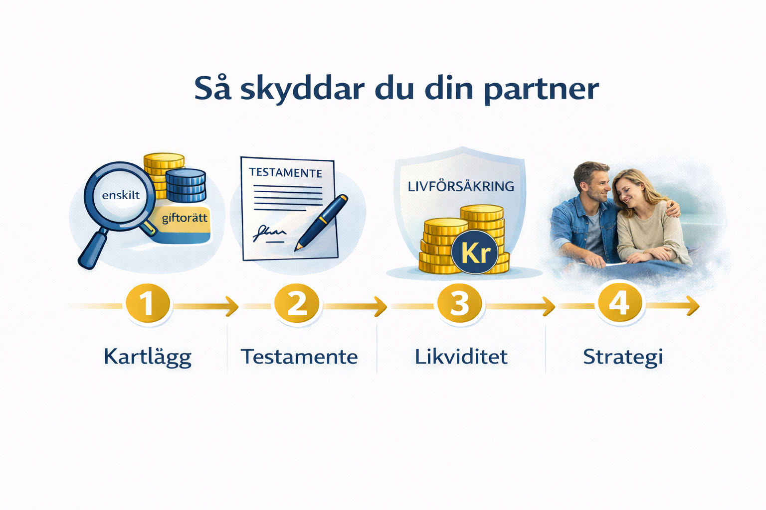 Särkullbarn har rätt att få ut sin laglott (hälften av arvslotten) direkt vid förälderns död. Med rätt kombination av testamente, livförsäkring och strategisk bodelning (12:2-jämkning) kan du skydda efterlevande partner, skapa likviditet och undvika att bostaden måste säljas.