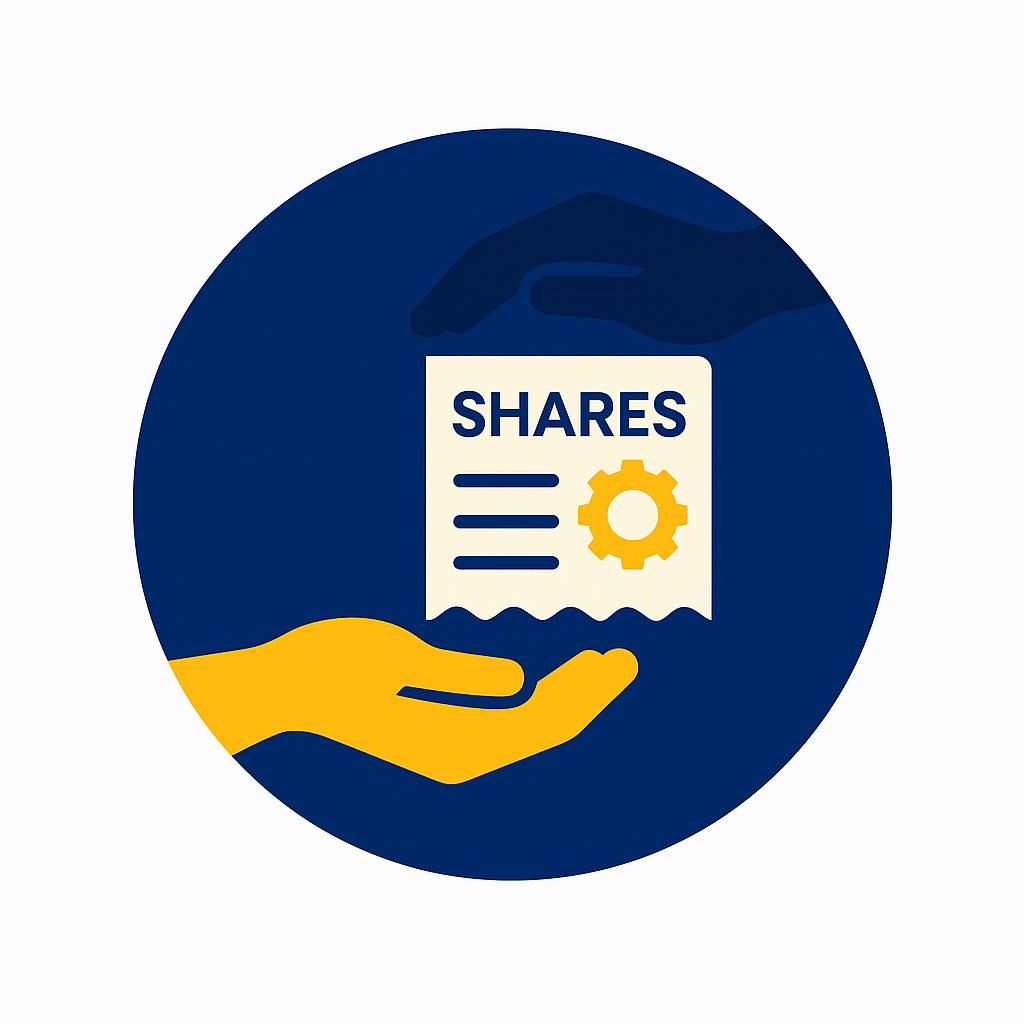 Aktier tjänas in över tid (t.ex. 4 år + 1 års cliff). Skyddar bolaget från “free riders”.
