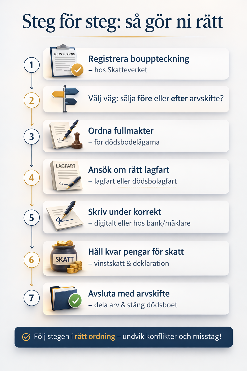Med rätt bouppteckning, rätt fullmakter och rätt lagfartssteg går processen oftast både tryggare, snabbare och med mindre risk för konflikt.