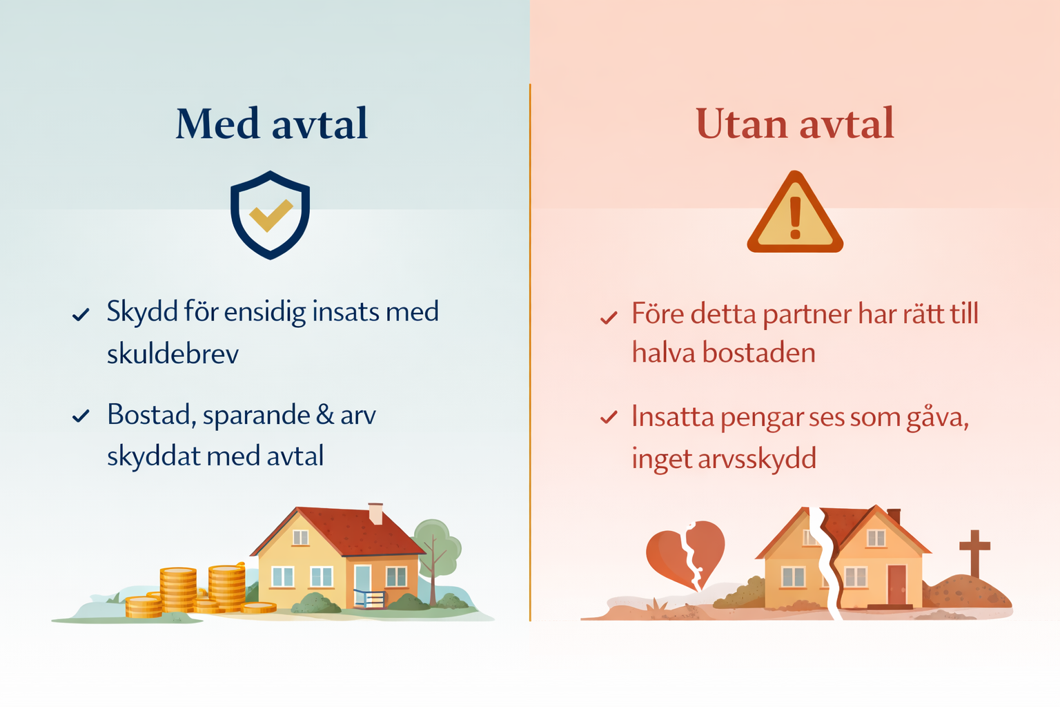 | Köpt bostad, ojämn insats | 🔴 Absolut | 🔴 Absolut | ✅ Ja |