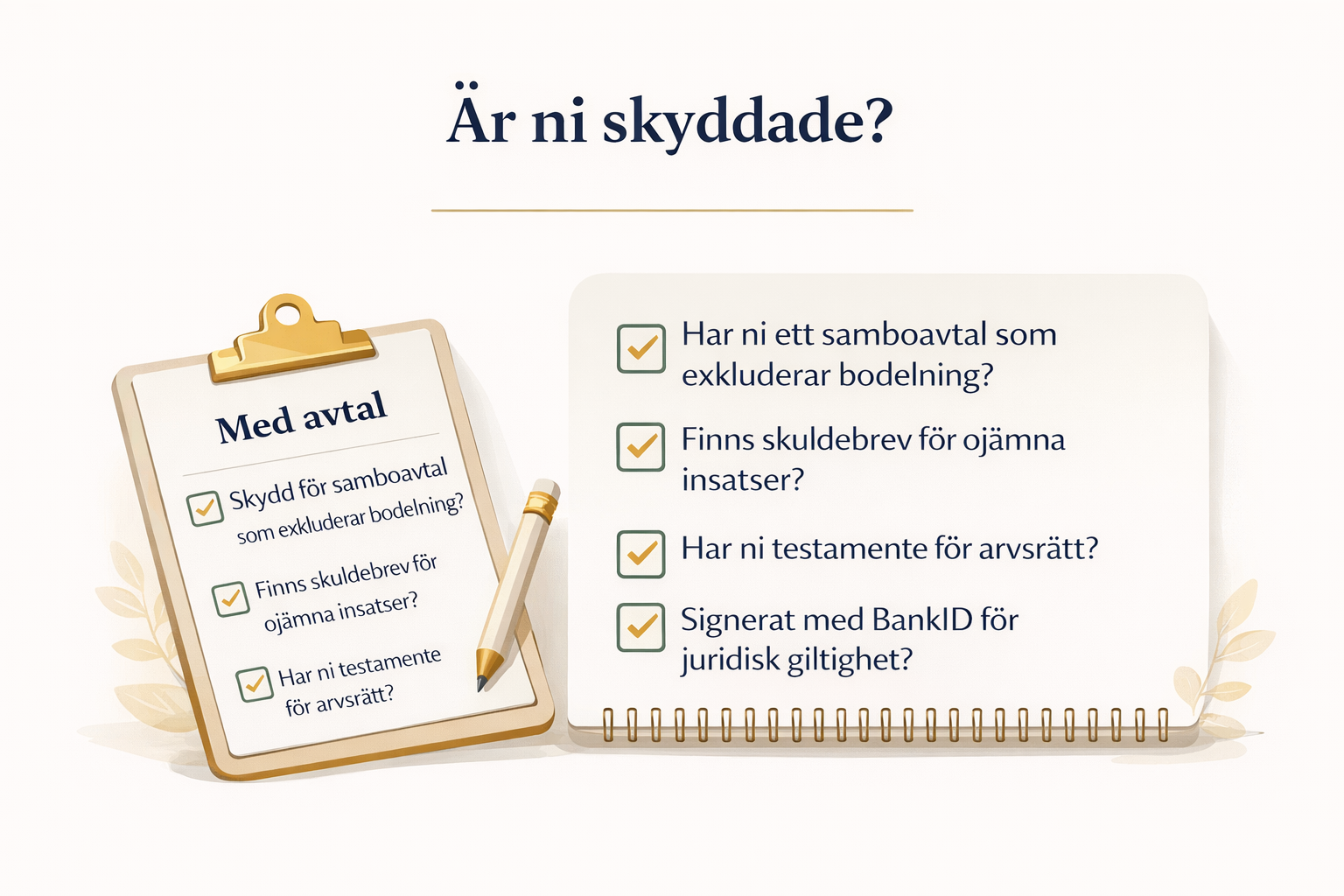 👉 Samboavtal + skuldebrev. Det ena utan det andra räcker ofta inte.