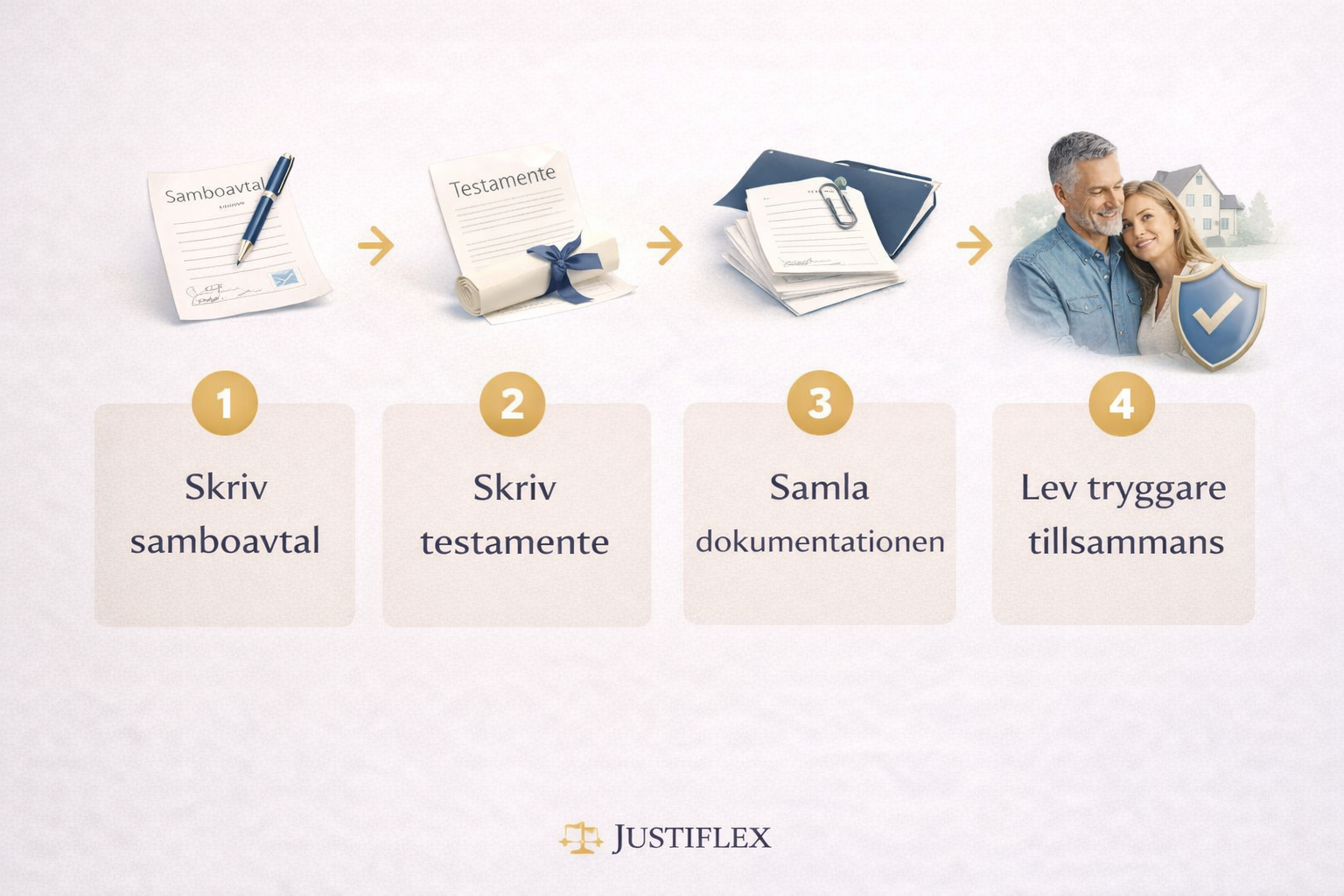 Justiflex hjälper er att skapa samboavtal och testamente digitalt — tydligt, tryggt och juridiskt genomtänkt.