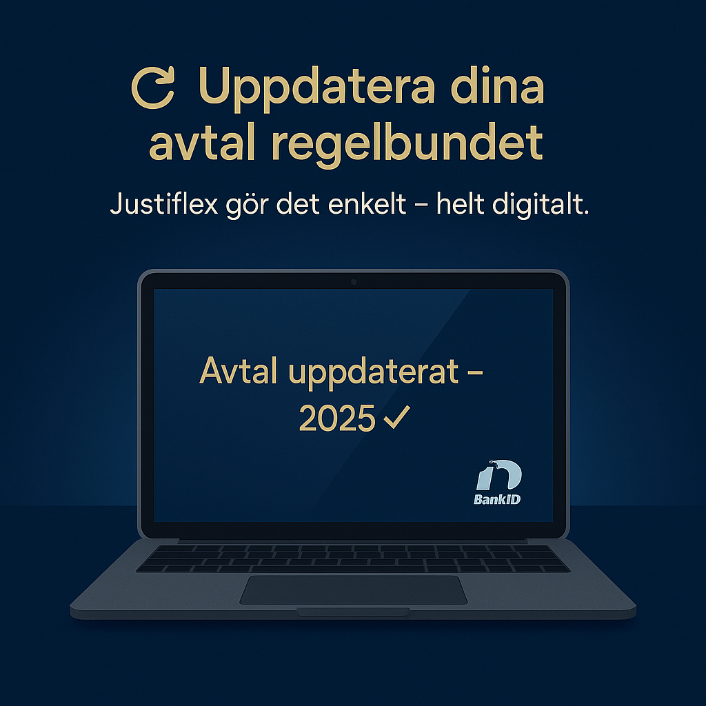 👉 Hos Justiflex kan du uppdatera avtal digitalt och e-signera med BankID – så allt är tydligt, giltigt och säkert bevisat.